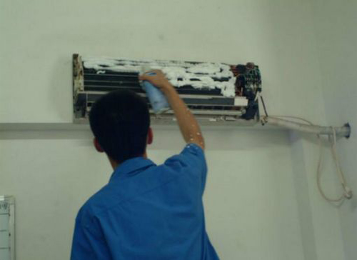 | 五台空调维修师傅给五台用户上门维修清洗空调。 |